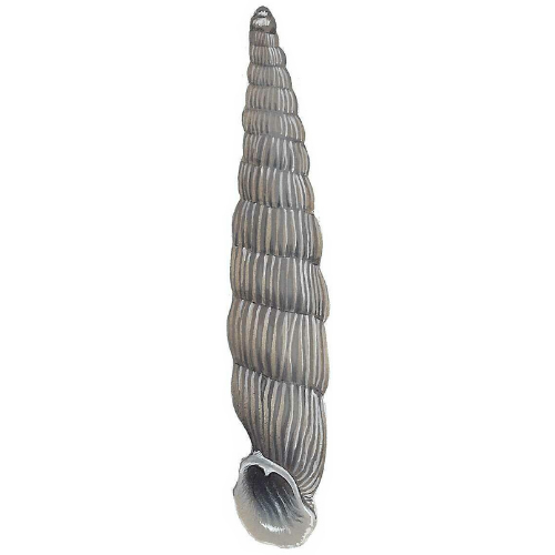 מין יבשתי הנמצא בדרך כלל בבתי גידול של מים מליחים, קרוב לחופים, וניזון מאצות ומחומר מתפורר. מאופין בכך שהשפה החיצונית של הפתח גבוהה פי שניים מהשפה העמודית. שולי הפתח בהירים והשיניים לבנות.