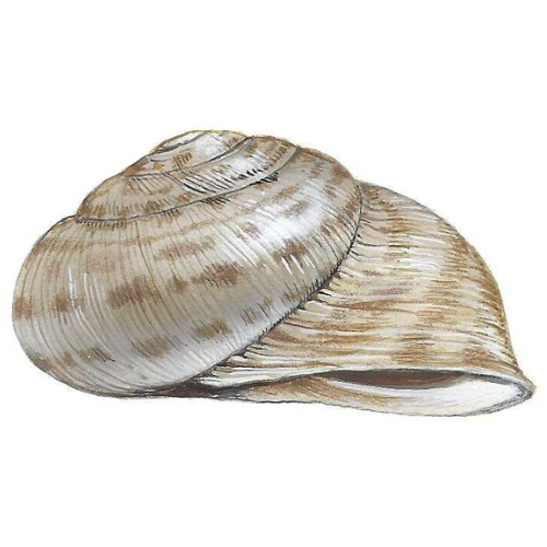 מין בעל תפוצה רחבה. מאופין בקונכייה מאוד גדולה. לפרטים הצעירים יש קרין בפיתול האחרון, שנעלם בהגיעם לבגרות.